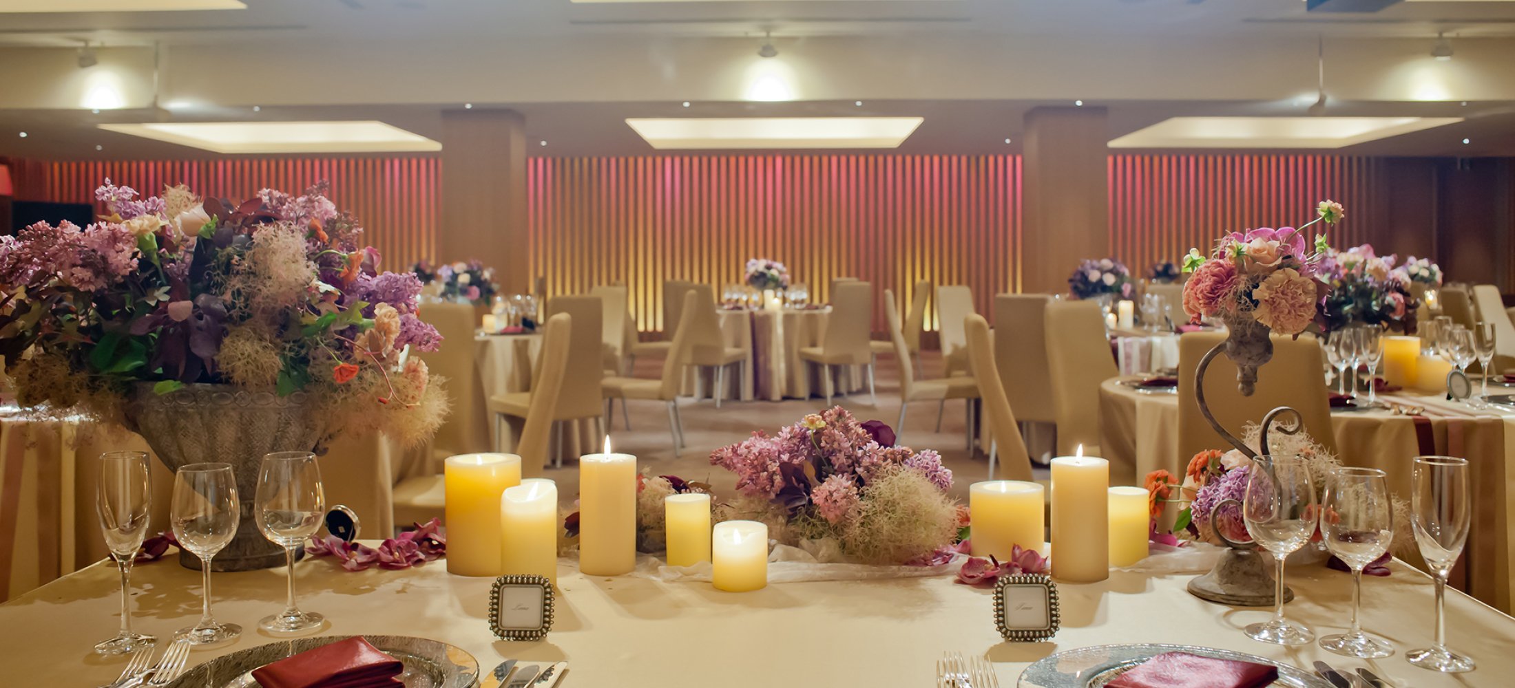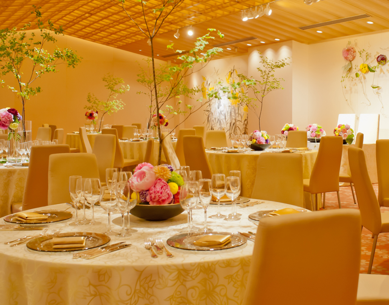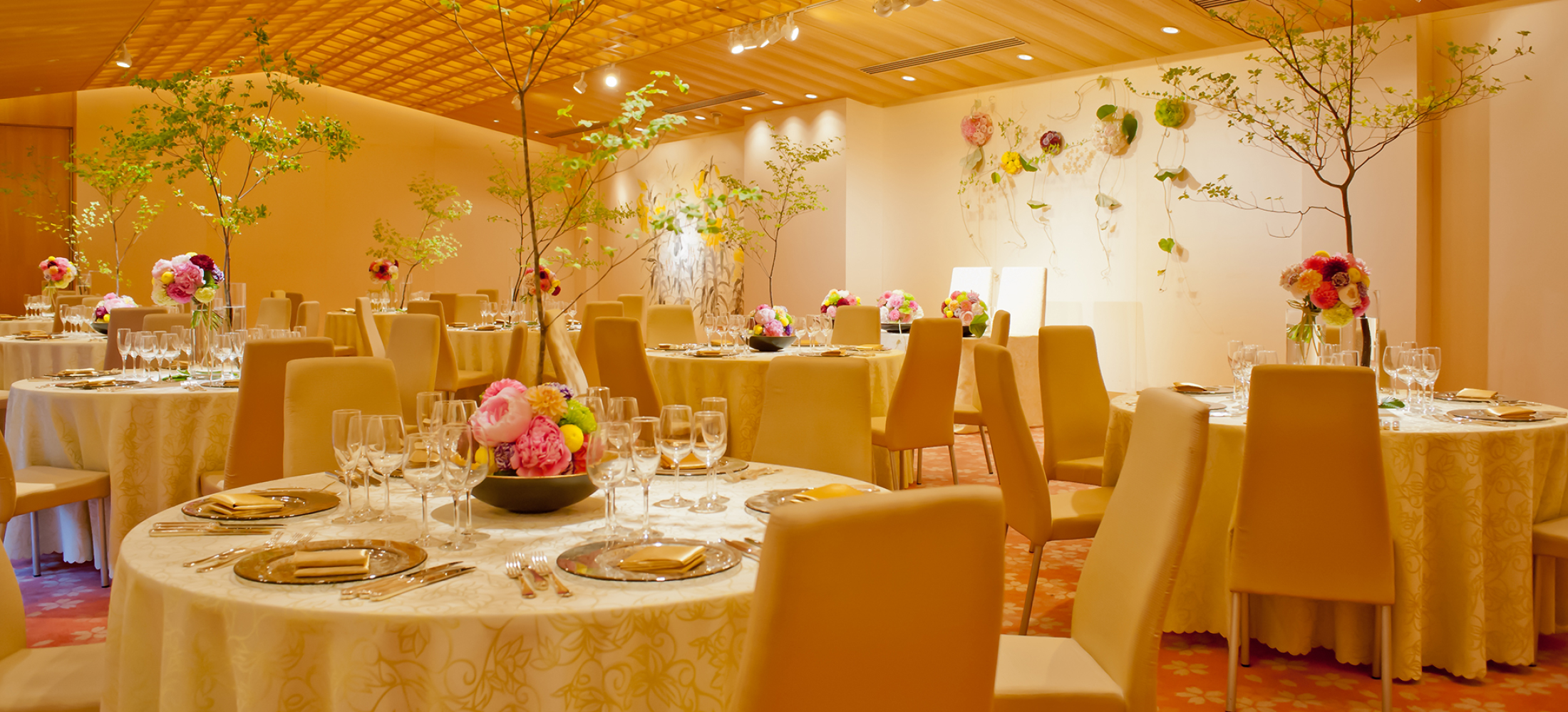 新郎新婦とゲストをあたたかく包みこむ和の伝統美を現代のテイストに仕上げた空間です。