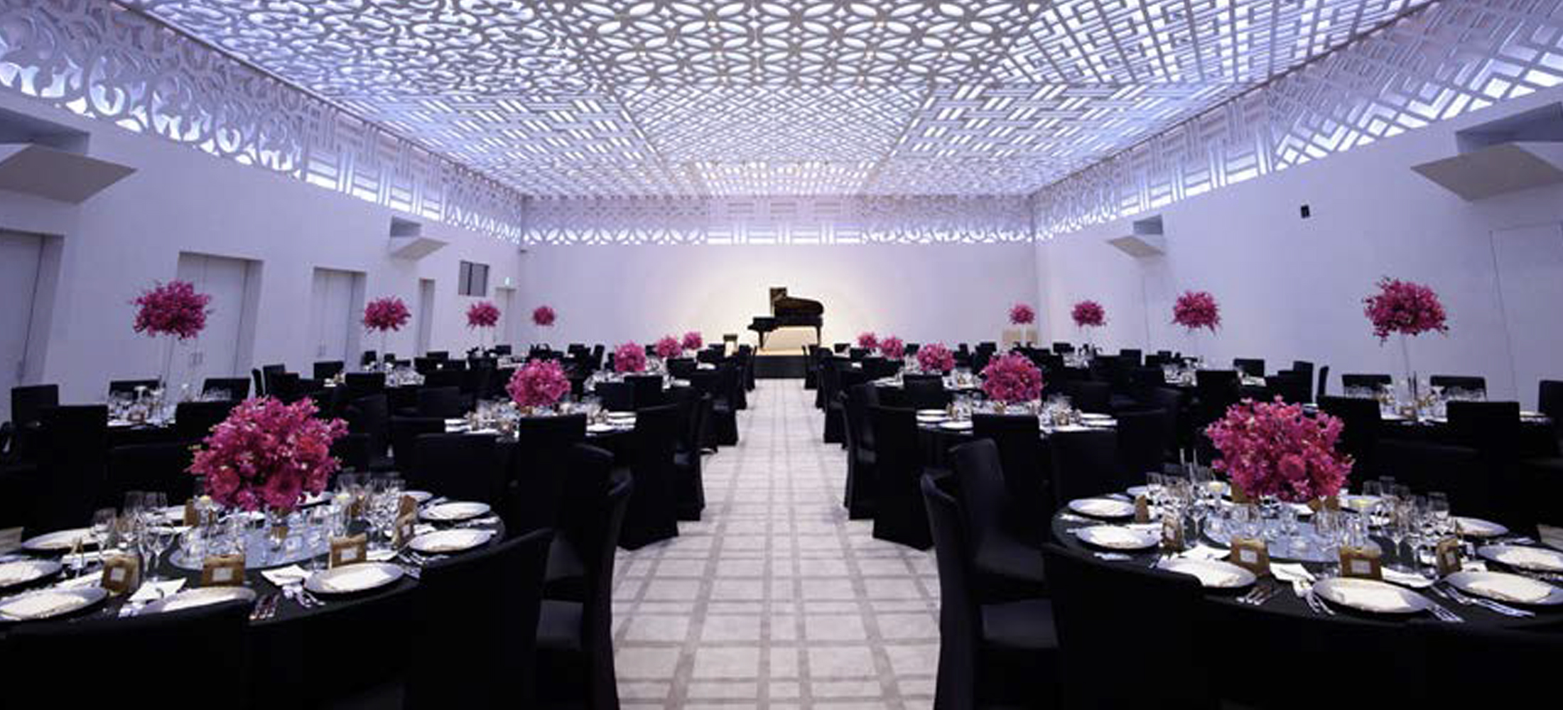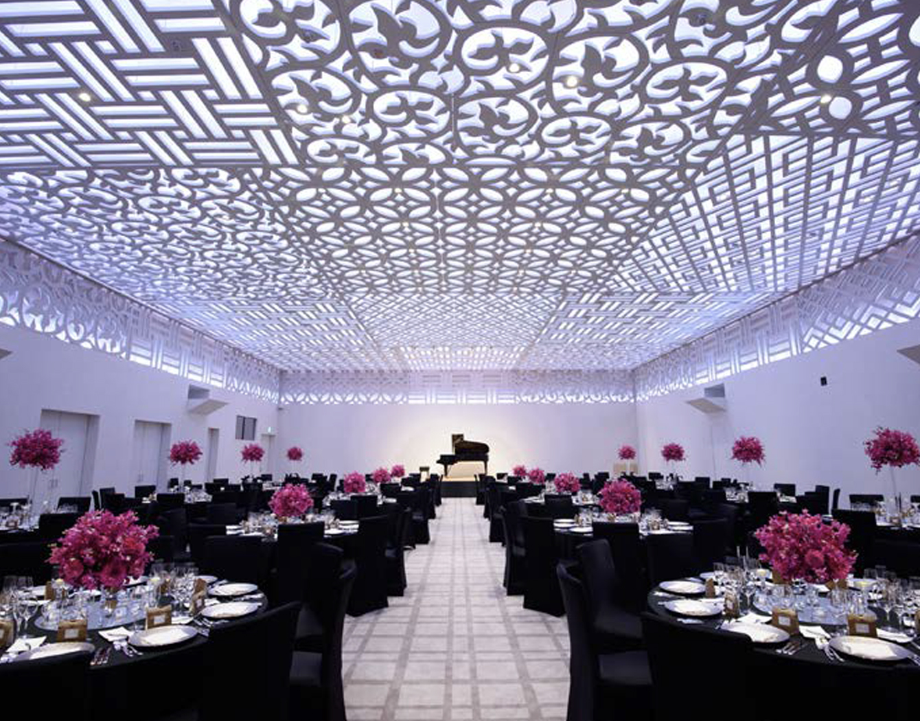 光の持つ可能性を再構築することから始まった空間デザイン。美しいデザインが施された天井が、光に多彩な表情を与える。