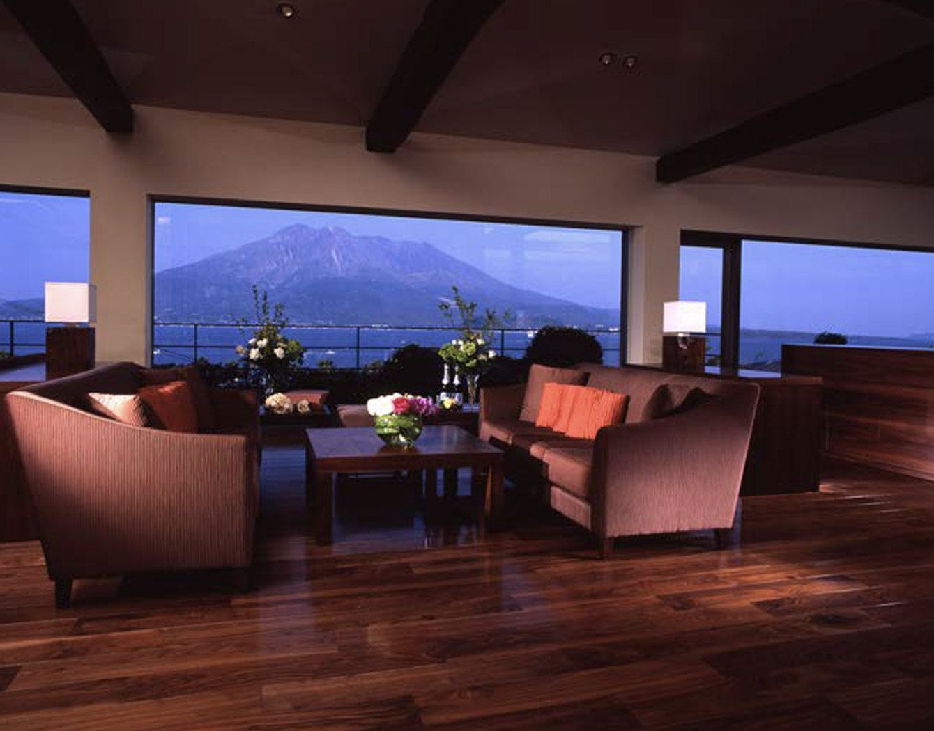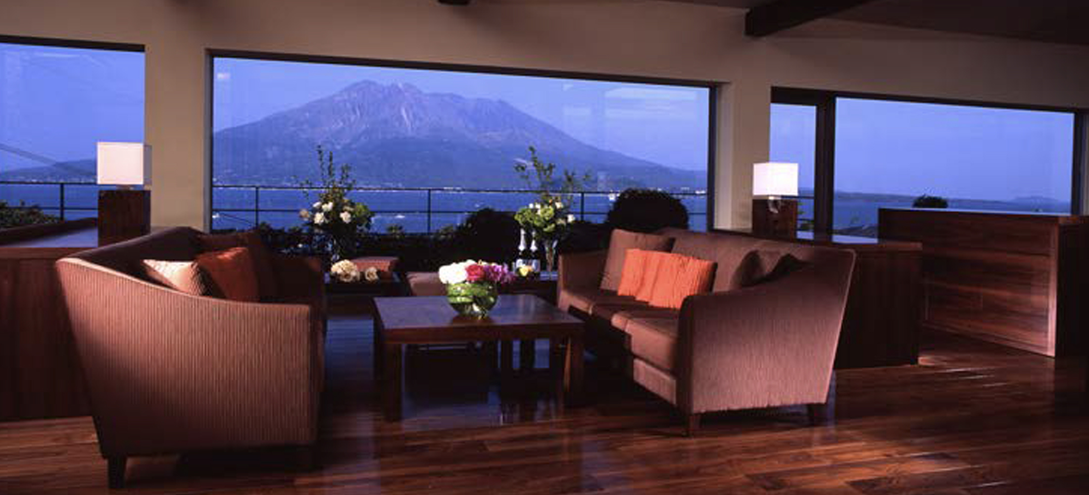 桜島を一望でき、スタイリッシュでラグジュアリーな空間で