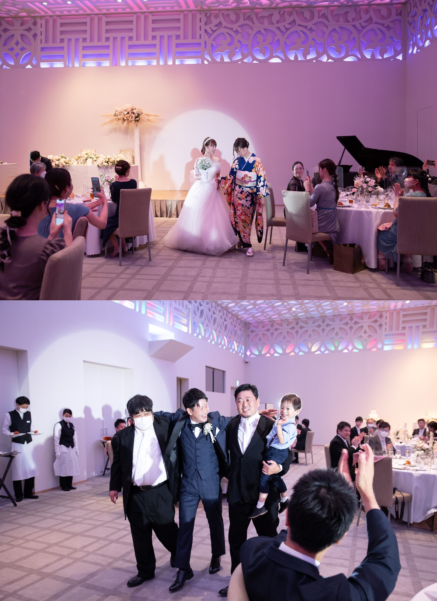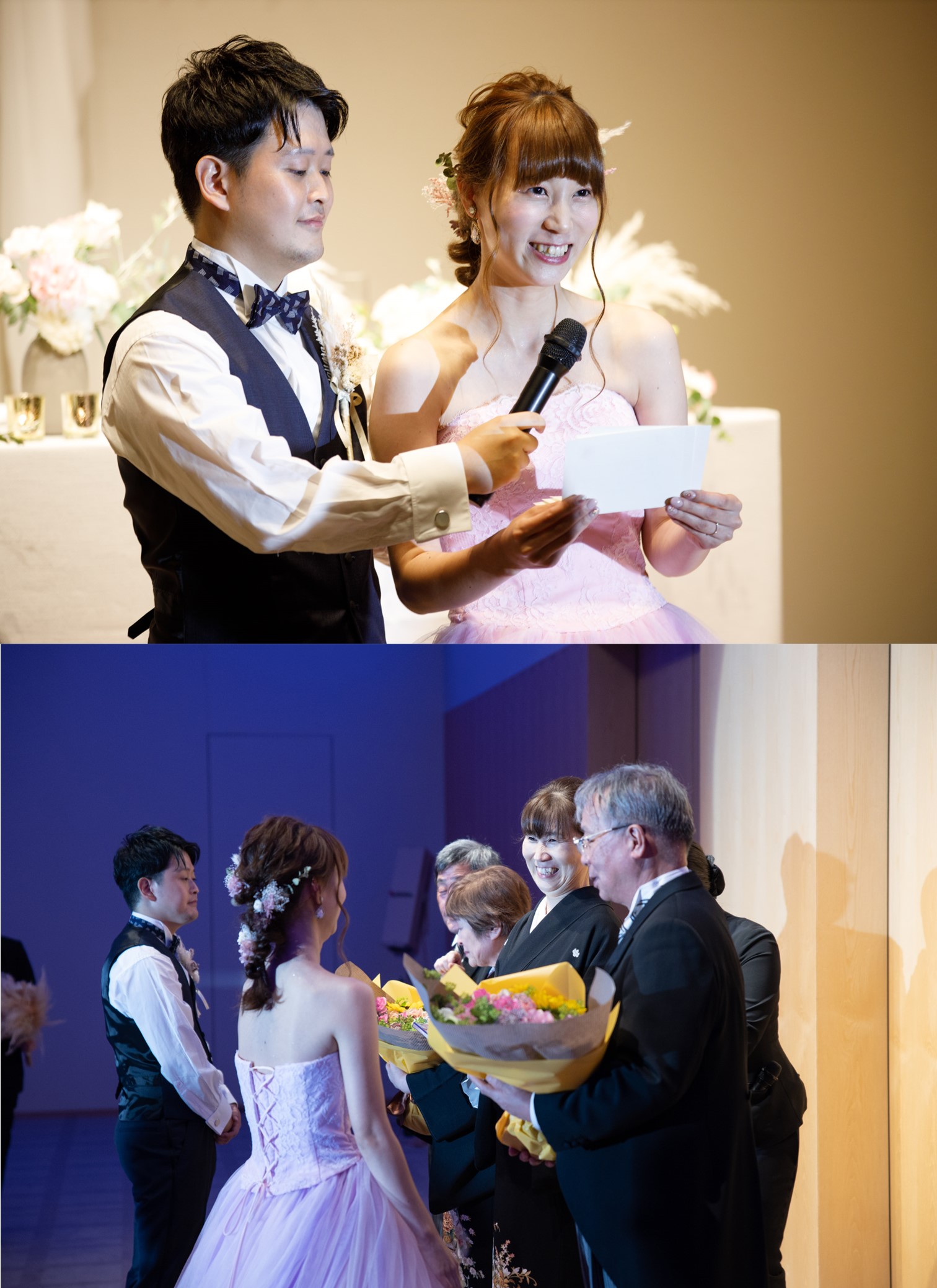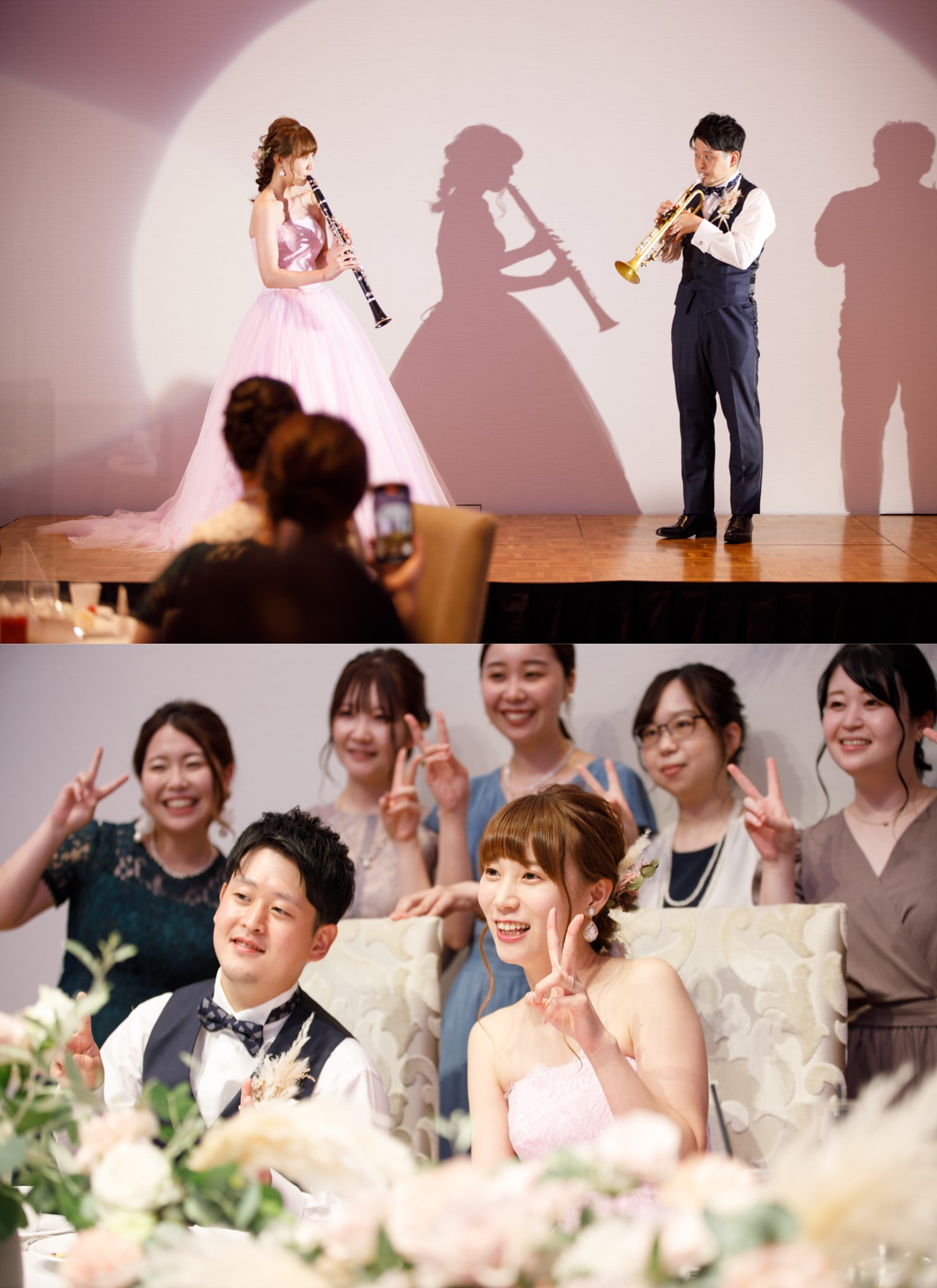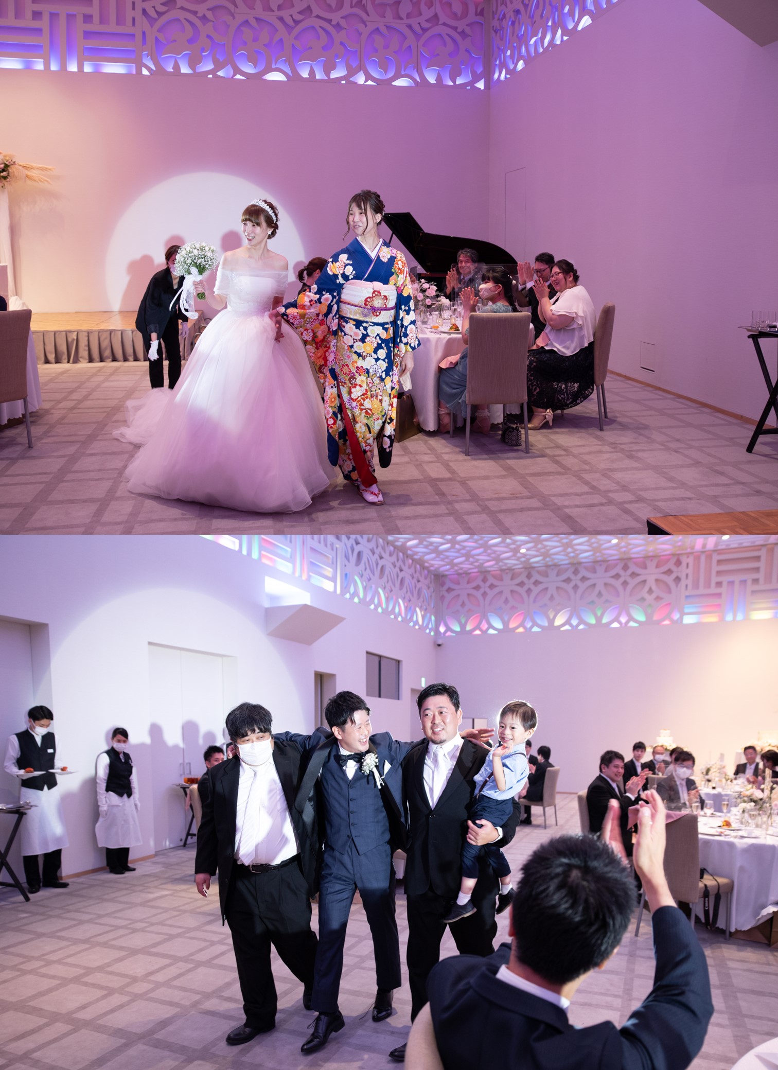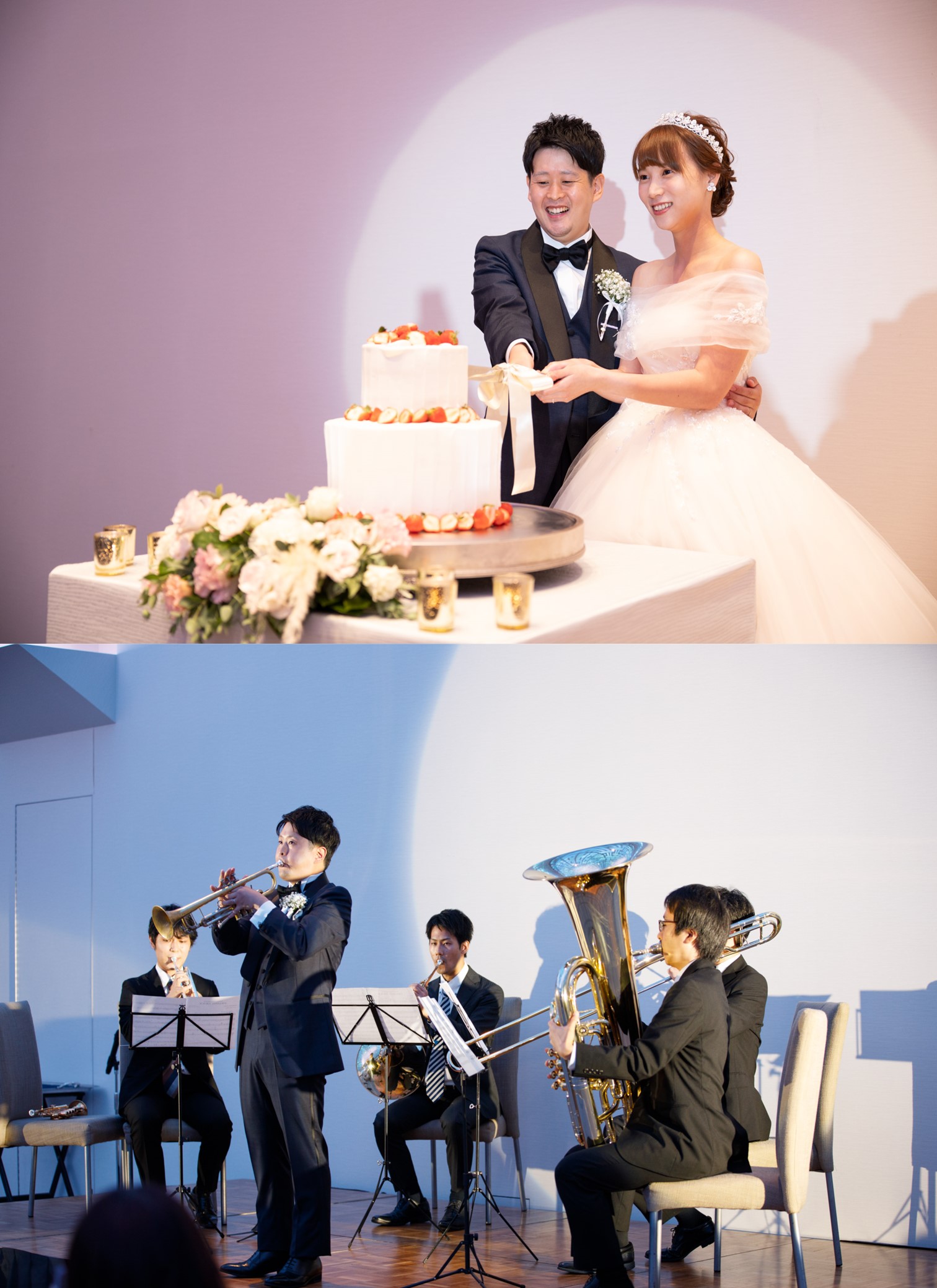ご家族やご親族様に見守られながら 貴重建築の神殿で誓いをたてられたおふたり たくさんの光に包まれた会場でゲストの皆様をおもてなし ご新郎様はご友人とコラボパフォーマンスを行い感動的な時間に 最後にはお2人からゲストへコンサートも! 皆様に感謝の気持ちを奏でました かけがえのない一日となるご結婚式となりました