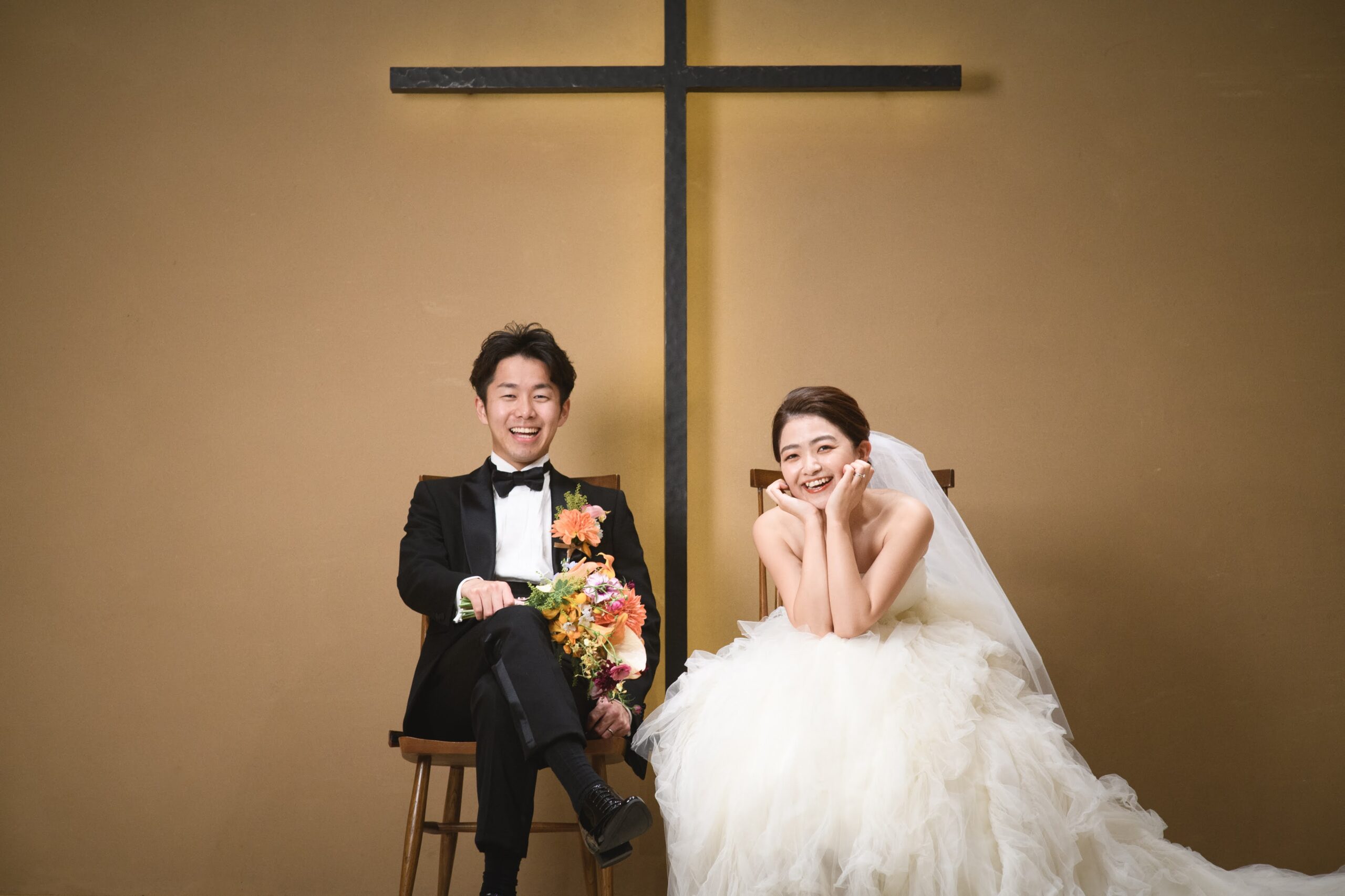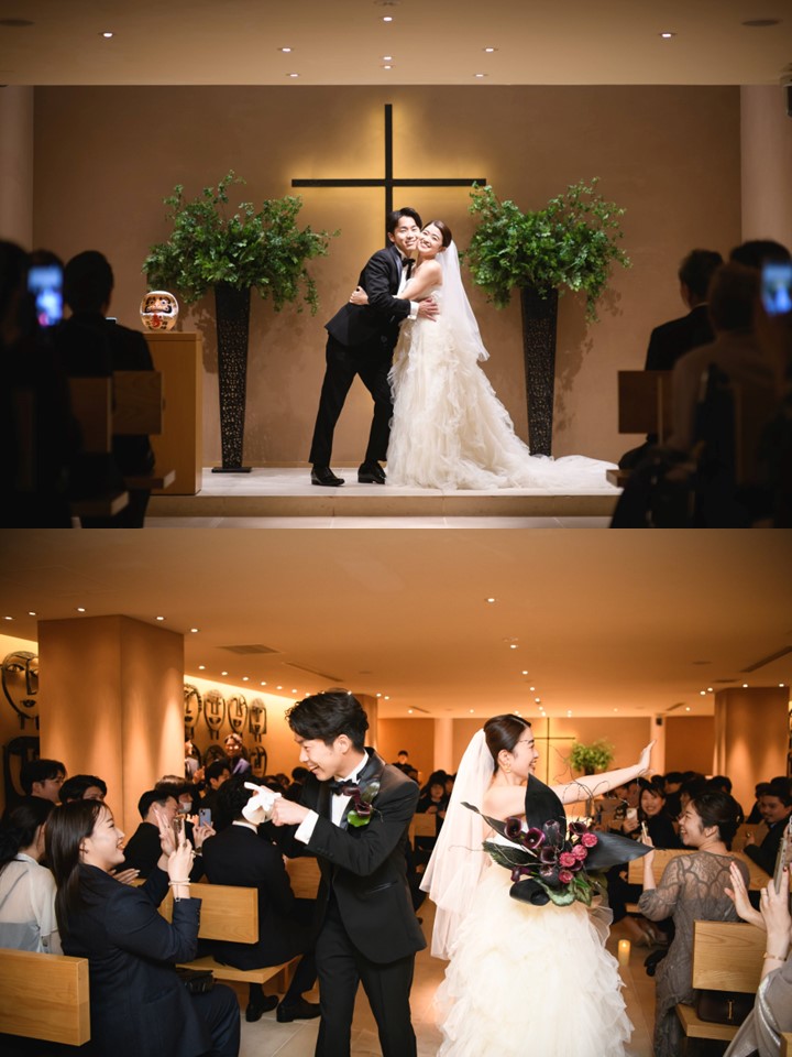温かみのあるチャペルにて人前式を執り行ったおふたり