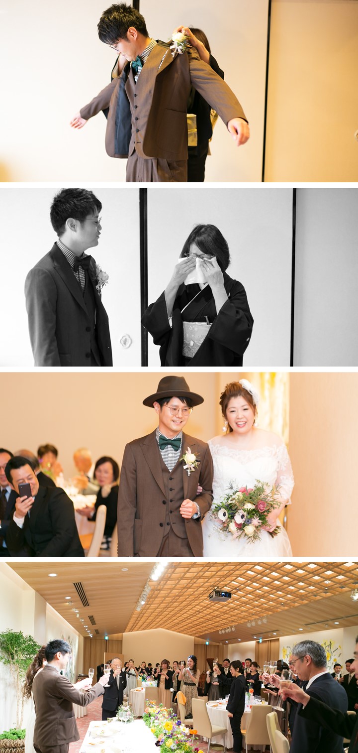 「大切な方に感謝を伝えたい」 その一言から始まったおふたりのウエディング 新郎お母様からのジャケットセレモニーを思い出の曲とともに そしてケーキを運んできてくれたのは両家のお父様 みんなで創り上げたアットホームで素敵なパーティ これまでお世話になった大切な方々への想いが詰まった一日に