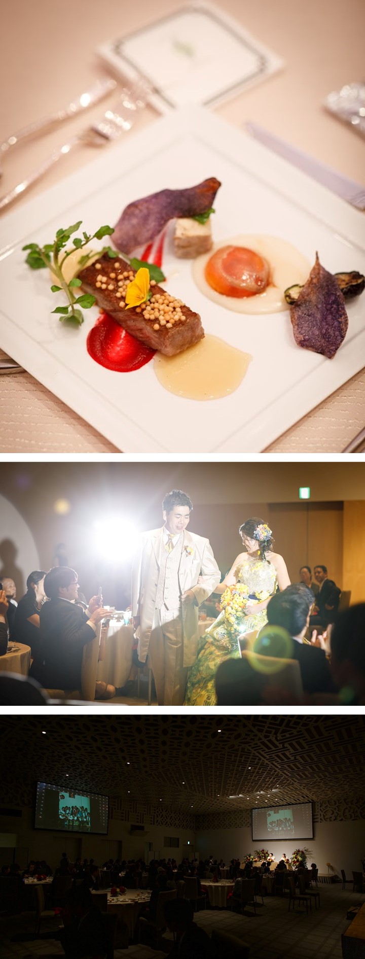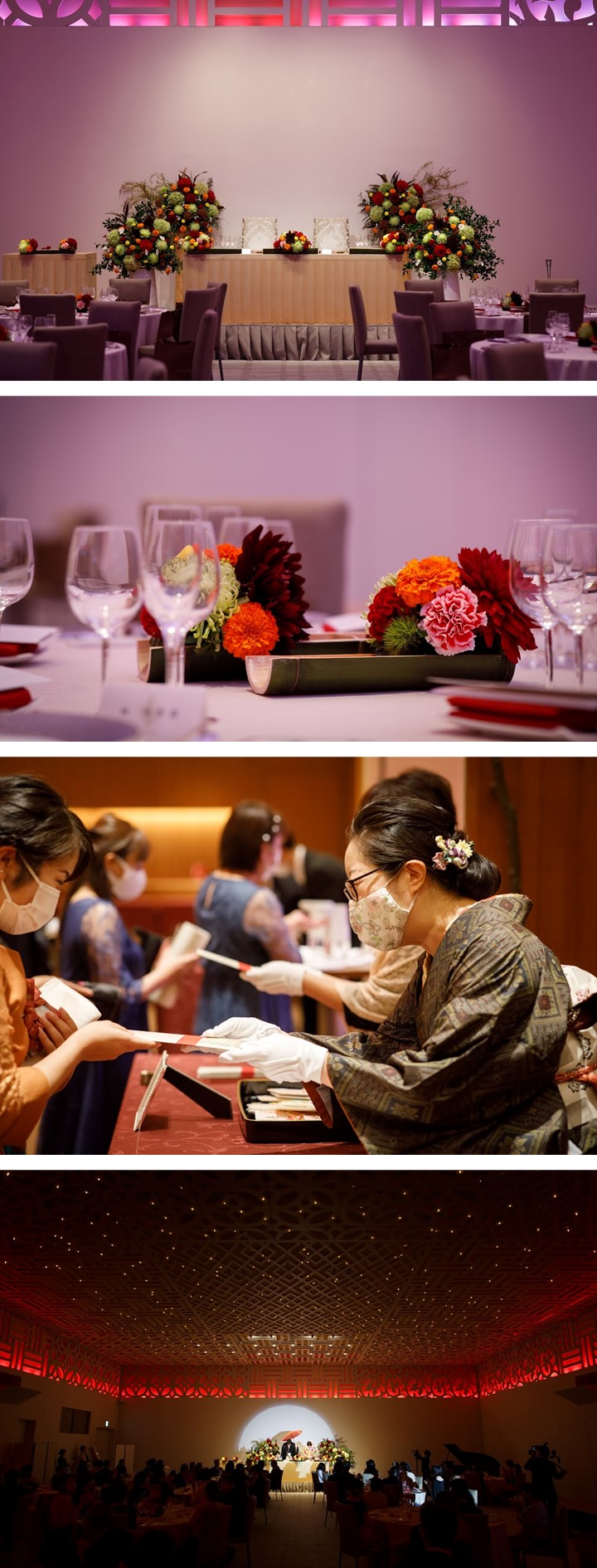 大切なゲストへのおもてなしを重視されたおふたりは、お料理にこだわり 会場内は”和”をテーマに、ボリュームのあるコーディネートで華やかに 披露宴ではゲストから想いのこもったビデオメッセージやサックスの生演奏 新郎様にサプライズでご披露された新婦様のフラダンスなど 笑顔溢れるたくさんの想いが結ばれたパーティーとなりました