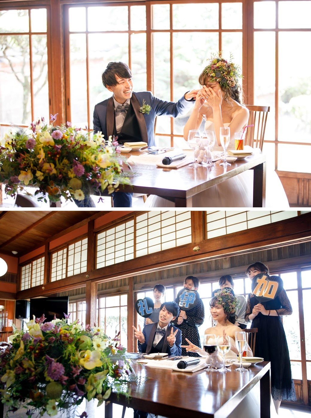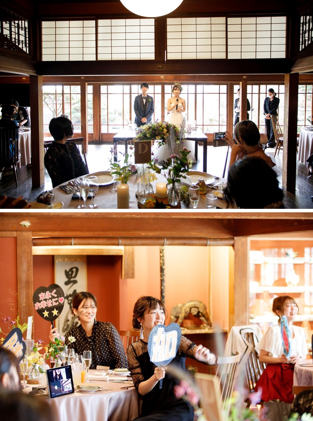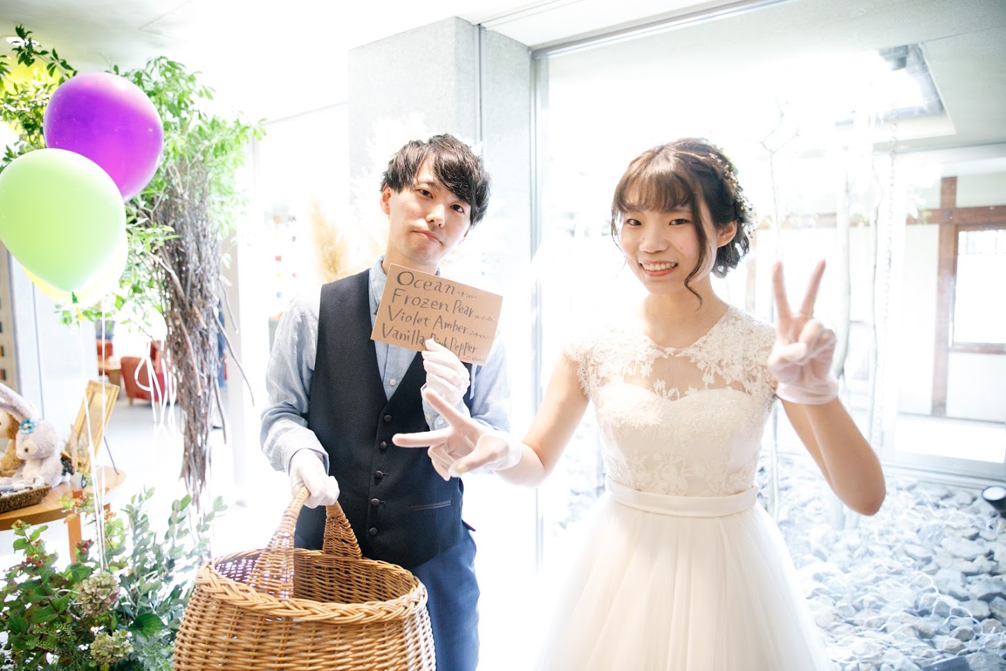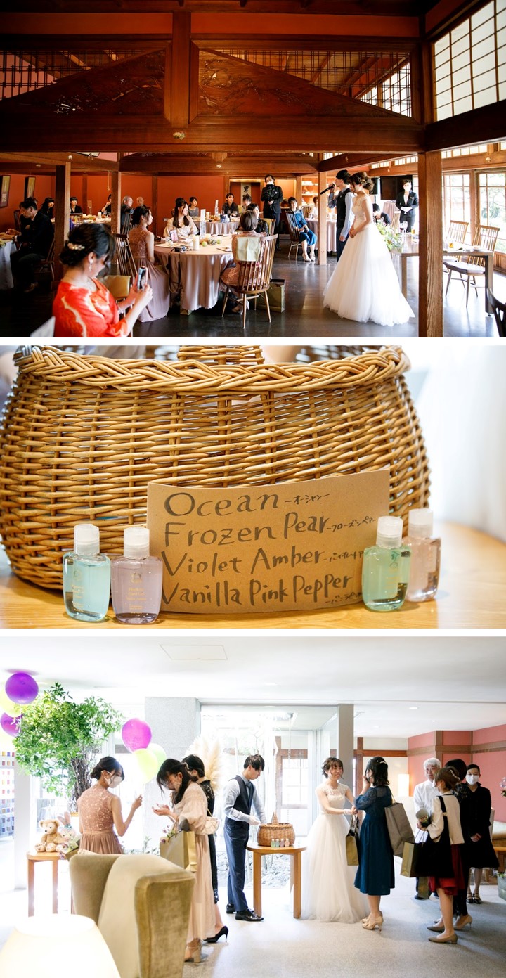 コロナ禍での開催となり ゲストが安心安全にご参加出来るように 考え抜かれた結婚式 お席次表はエスコートアイテムに お席札はマスクケースにし 当日参加出来なかったご遠方のご友人の皆様には オンラインでご参加をいただきました 対策をしっかりと行いながらも お越しいただいた皆様が楽しめるご結婚式にしたいと ゲストとゆっくり過ごすことを重視したパーティ当日は 沢山の笑顔があふれ 時には嬉し涙も流れる 温かい一日となりました