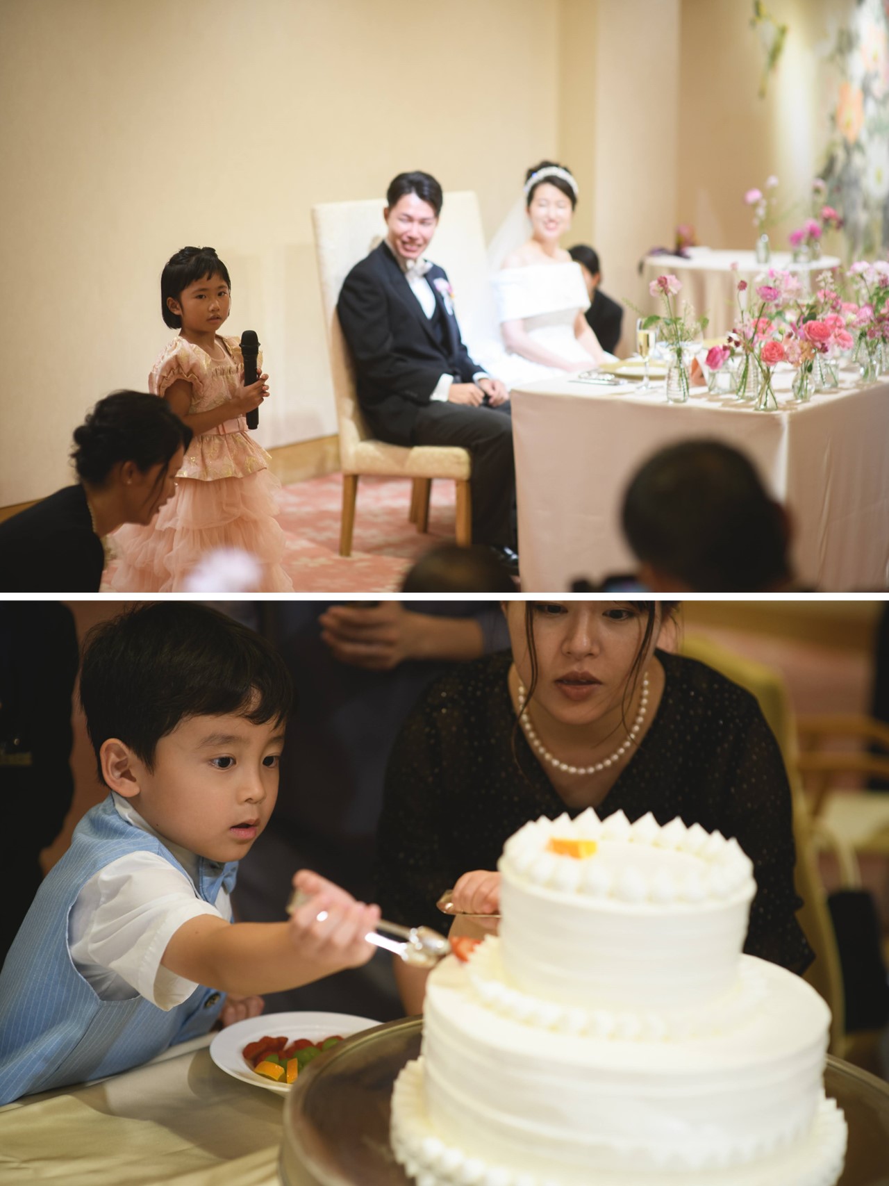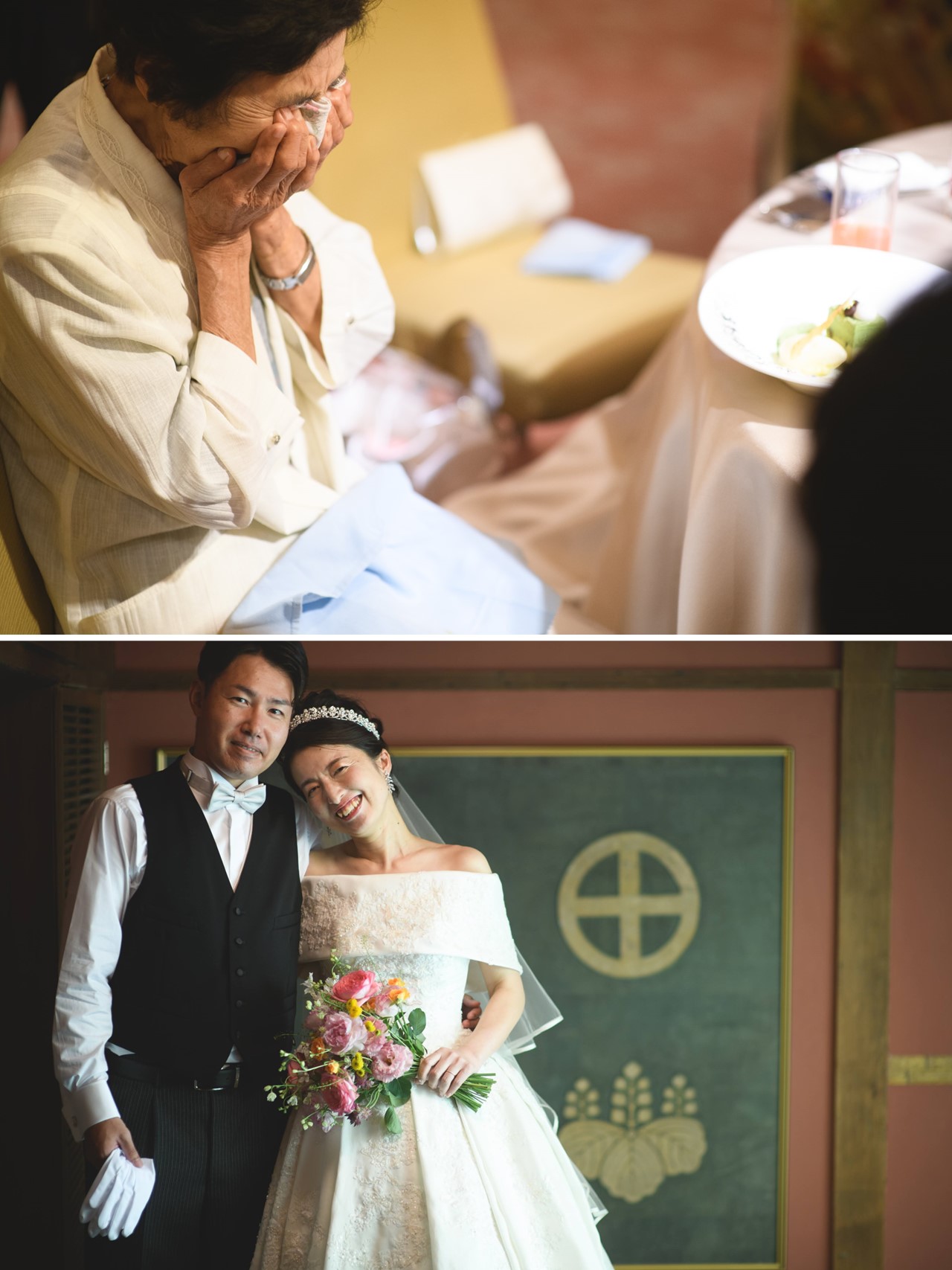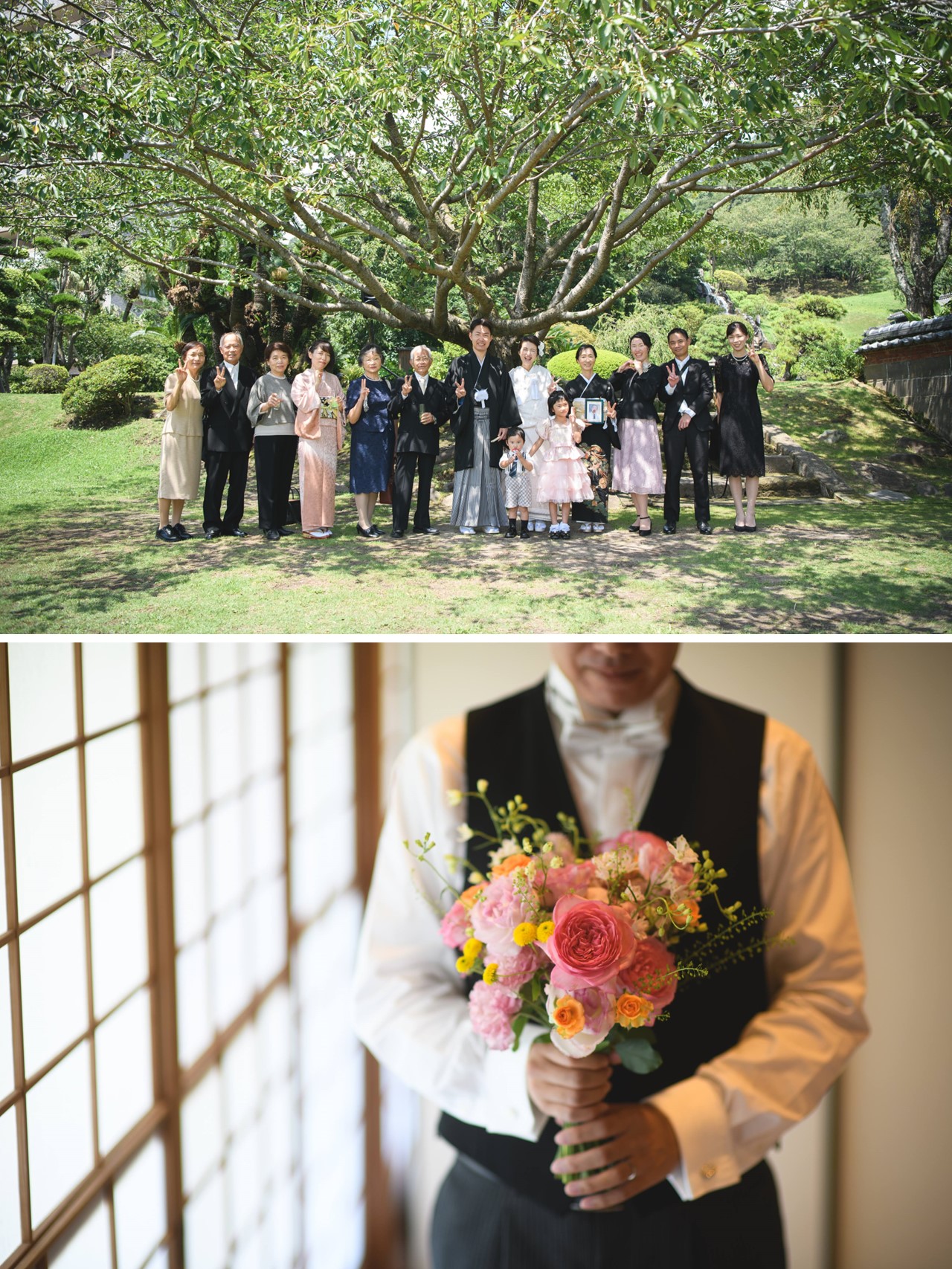 青空に新緑が輝く晴れやかな日に 雅楽の生演奏の中執り行った神前式 挙式の前にはお祖母様から新婦様へ幸せの願いを込めた 紅差しの儀を行いかけがえのないひと時に ケーキセレモニーではゲスト全員でトッピングを仕上げ 世界に1つだけのウエディングケーキが出来上がり大盛り上がり サプライズでお祖母様へ米寿のお祝いの メッセージプレートをプレゼントし感動の瞬間に 笑顔と感動に包まれた温かい1日となりました